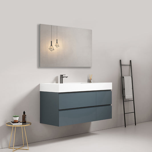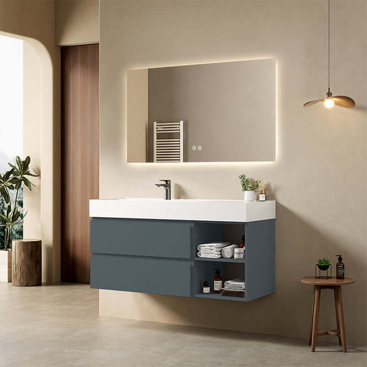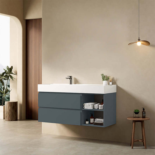Mobile bagno sospeso 120 cm Blu Mare Lavabo a Sinistra in Resina Senza Specchio - Fiji Paint Plus