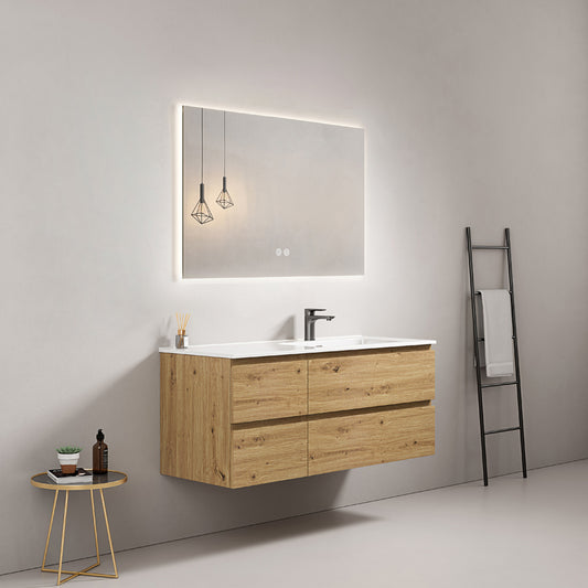 Mobile bagno sospeso 120 cm Bruno Medio Lavabo a Sinistra in Ceramica Specchio Quadro Retroilluminato - Fiji Wood