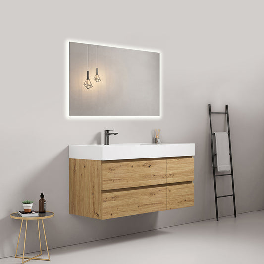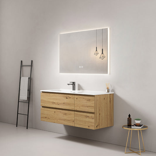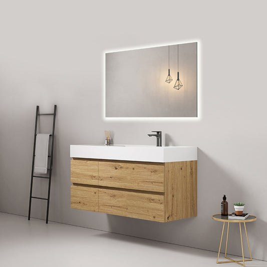 Mobile bagno sospeso 120 cm Bruno Medio Lavabo a Sinistra in Resina Specchio Quadro Retroilluminato - Fiji Wood