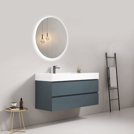 Mobile bagno sospeso 120 cm Blu Mare Lavabo a Sinistra in Resina Specchio Tondo Retroilluminato - Fiji Paint