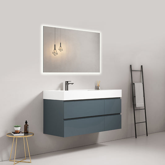 Mobile bagno sospeso 120 cm Blu Mare Lavabo a Sinistra in Resina Specchio Quadro Retroilluminato - Fiji Paint Plus