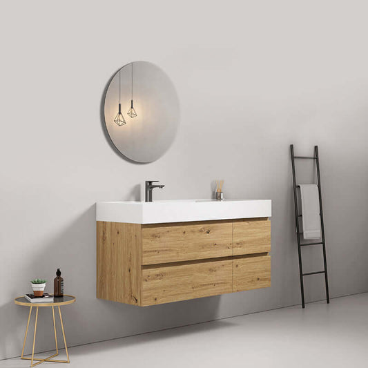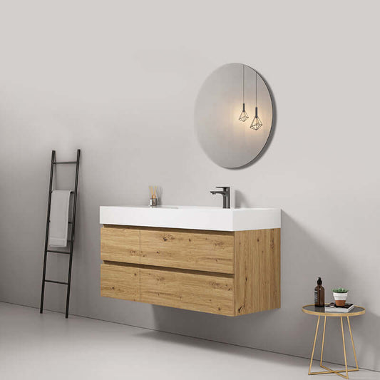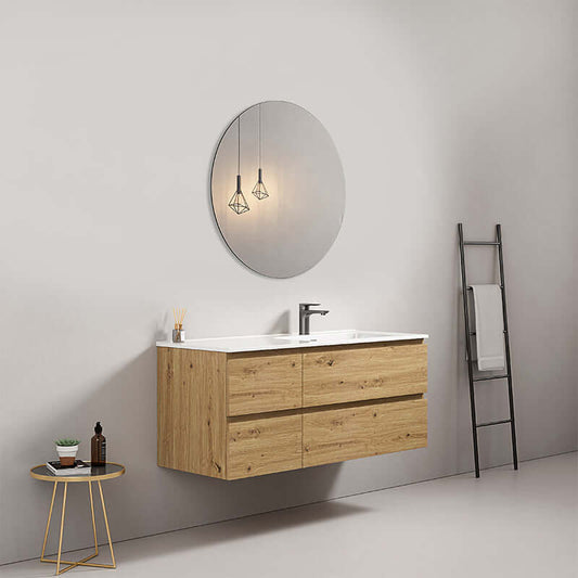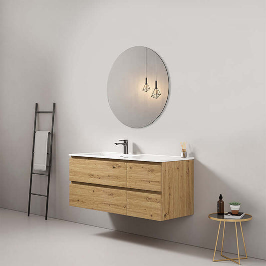 Mobile bagno sospeso 120 cm Bruno Medio Lavabo a Sinistra in Resina Specchio Tondo - Fiji Wood