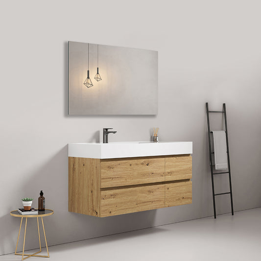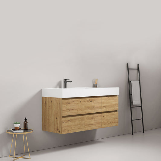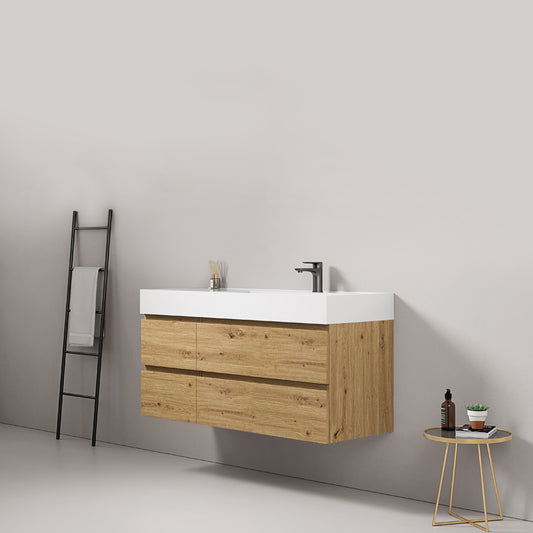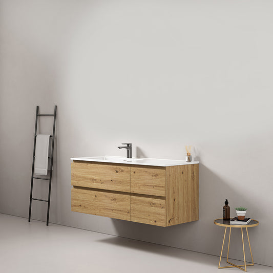 Mobile bagno sospeso 120 cm Bruno Medio Lavabo a Sinistra in Resina Senza Specchio - Fiji Wood