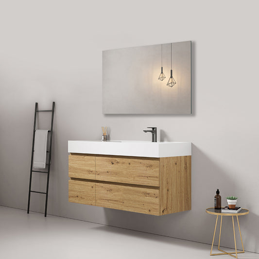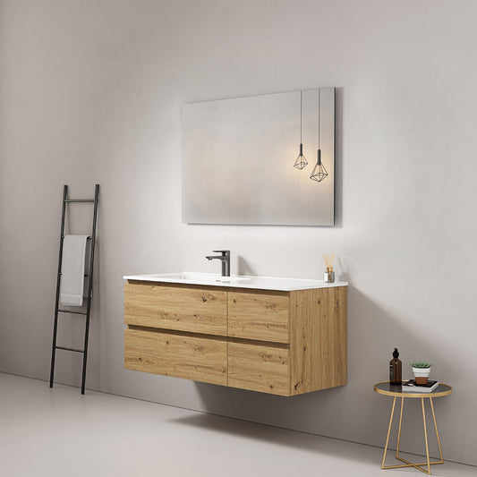 Mobile bagno sospeso 120 cm Bruno Medio Lavabo a Sinistra in Resina Specchio Quadro - Fiji Wood