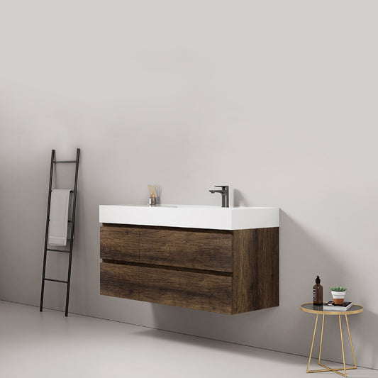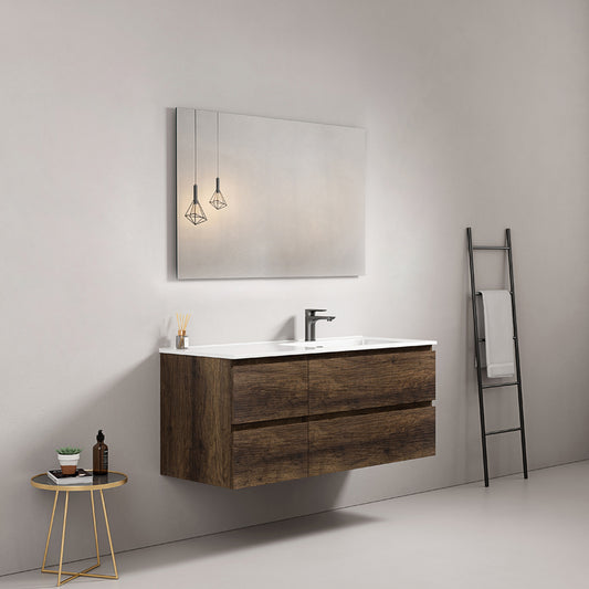 Mobile bagno sospeso 120 cm Bruno Scuro Lavabo a Destra in Resina Senza Specchio - Fiji Wood