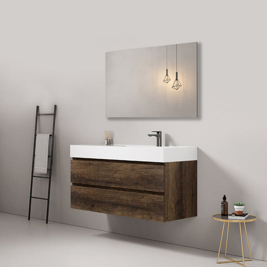Mobile bagno sospeso 120 cm Bruno Scuro Lavabo a Destra in Resina Specchio Quadro - Fiji Wood