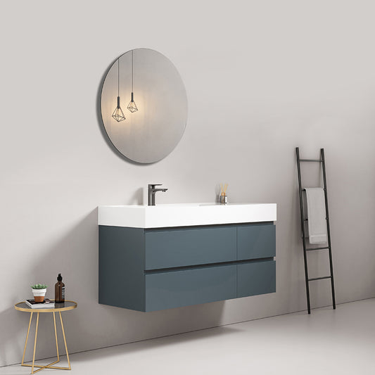 Mobile bagno sospeso 120 cm Blu Mare Lavabo a Sinistra in Resina Specchio Tondo - Fiji Paint Plus
