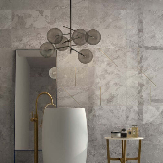 Gres Porcellanato Effetto Pietra Rettificato Lucido 30x60 9mm Grey Limestone Elemental Stone - Florim