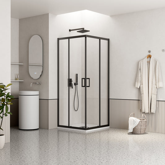 Box Doccia 110x110 cm Doppio Scorrevole Vetro Trasparente e Profilo Nero - Escape