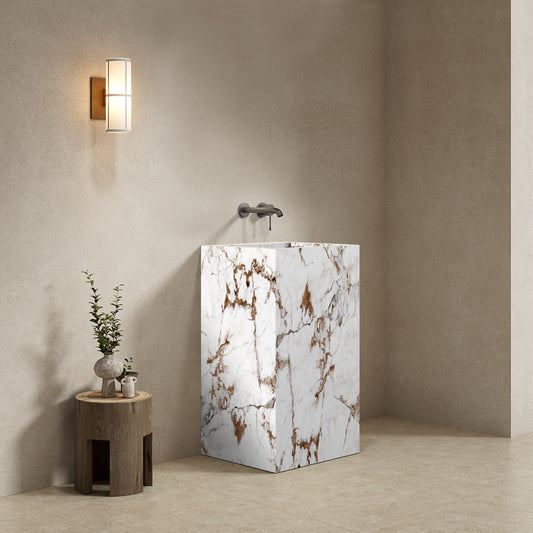 Lavabo Freestanding in Gres Lucido Calacatta 60 cm - Pedestal
