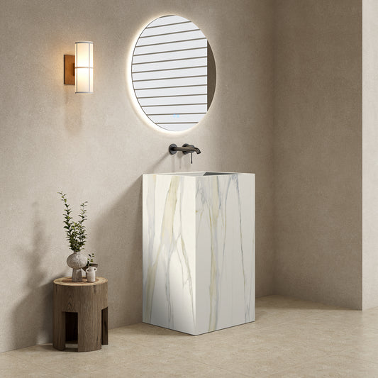 Lavabo Freestanding in Gres Opaco Calacatta 60 cm Specchio Tondo Retroilluminato - Pedestal