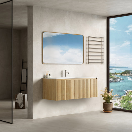 Mobile Bagno 120 cm Sospeso Rovere Chiaro Specchio con Cornice - Pace