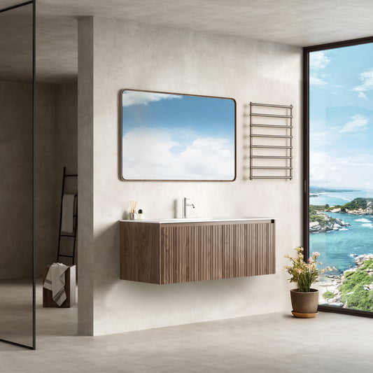 Mobile Bagno 120 cm Sospeso Rovere Scuro Specchio con Cornice - Pace