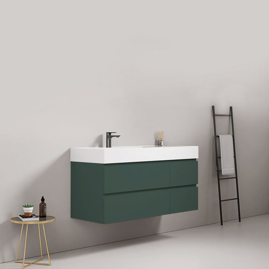 Mobile bagno sospeso 120 cm Verde Salvia Lavabo a Destra in Resina Senza Specchio - Fiji Paint