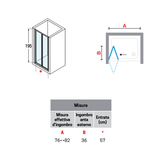 Porta Doccia 76 cm Vetro Trasparente e Profilo Cromo - Zephyros