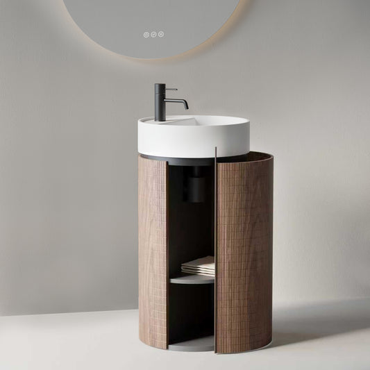 Lavabo Freestanding 45 cm Rovere Scuro Specchio Tondo Retroilluminato - Cora