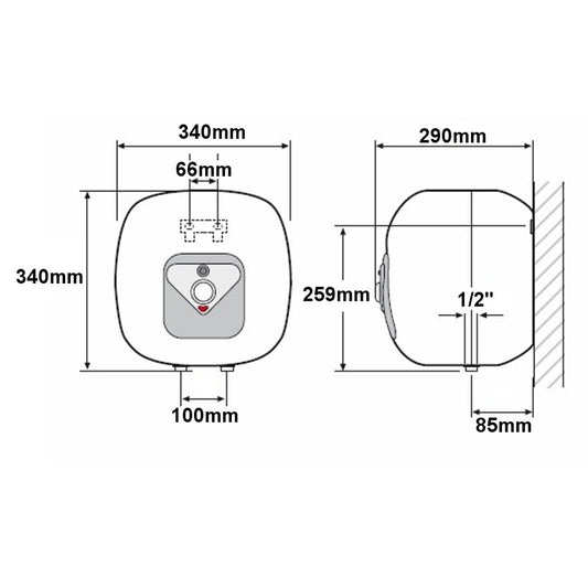 Scaldabagno Elettrico 30 LT Quadrato Sopralavello 2 Anni di Garanzia - Dianboiler