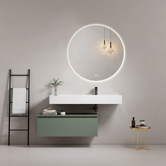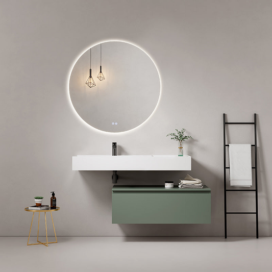 Lavabo Freestanding Reid 50 cm Verde Salvia Specchio Tondo Retroilluminato - Meda