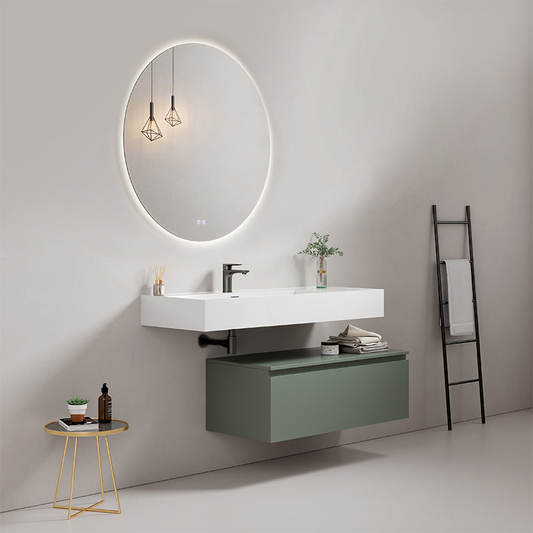 Lavabo Freestanding Reid 50 cm Verde Bottiglia Specchio Tondo - Meda