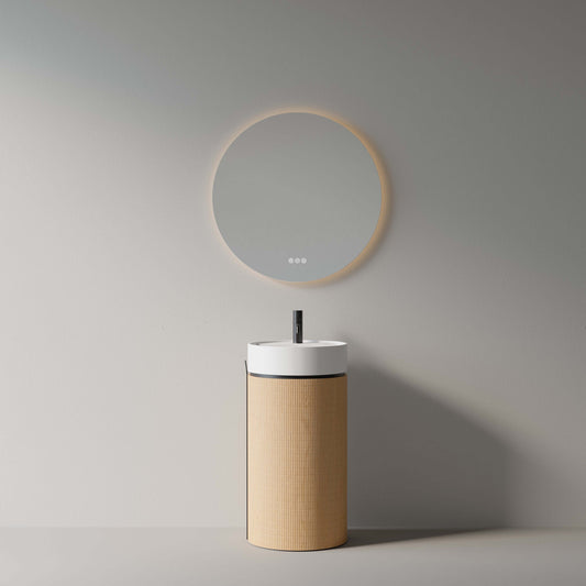 Lavabo Freestanding 45 cm Rovere Chiaro Specchio Tondo Retroilluminato - Cora