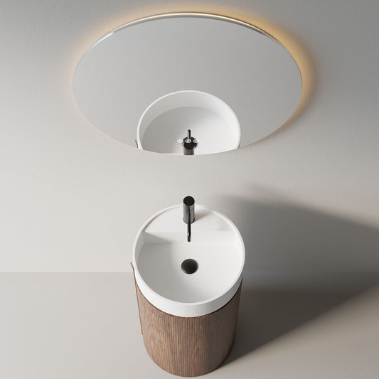 Lavabo Freestanding Reid 50 cm Tortora Specchio Tondo - Meda