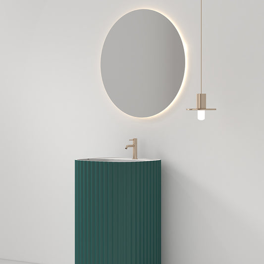 Lavabo Freestanding Reid 50 cm Verde Bottiglia Specchio Tondo Retroilluminato - Meda