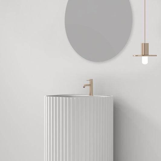 Lavabo Freestanding Reid 50 cm Bianco Specchio Tondo - Meda