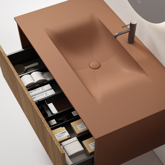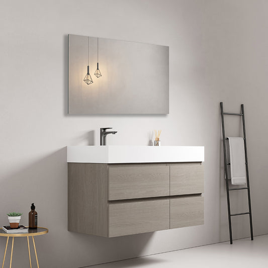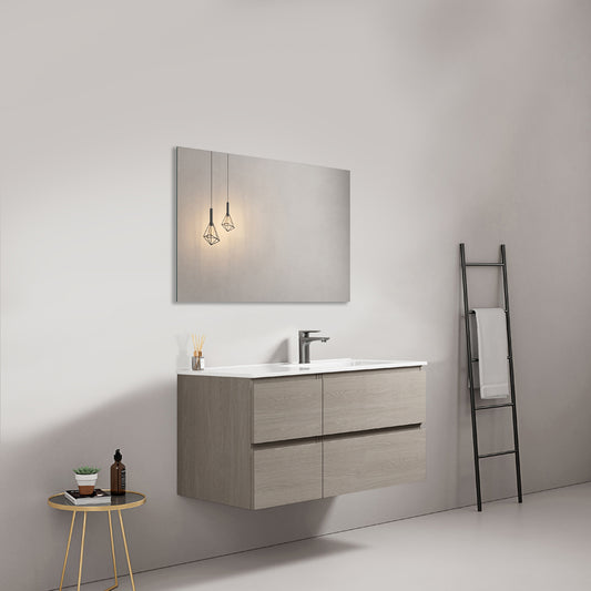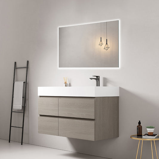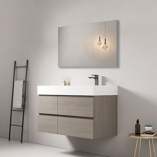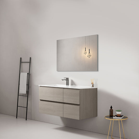 Mobile bagno sospeso 100 cm Beige Lavabo a Sinistra in Resina Specchio Quadro - Fiji Wood