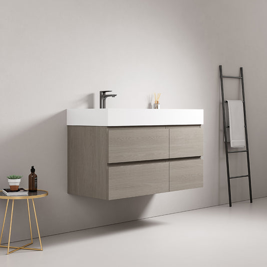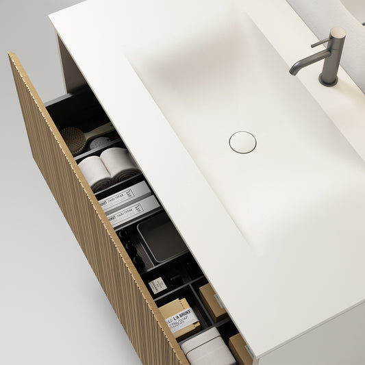 Mobile bagno sospeso 100 cm Beige Lavabo a Destra in Resina Senza Specchio - Fiji Wood