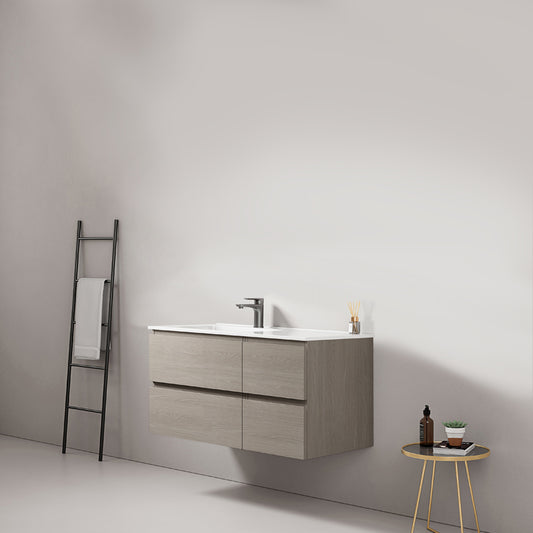 Mobile bagno sospeso 100 cm Beige Lavabo a Sinistra in Ceramica Senza Specchio - Fiji Wood