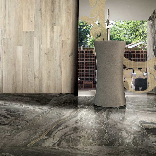 Gres Porcellanato Effetto Marmo Rettificato Naturale 30x60 9mm Choco Reves de Rex - Florim