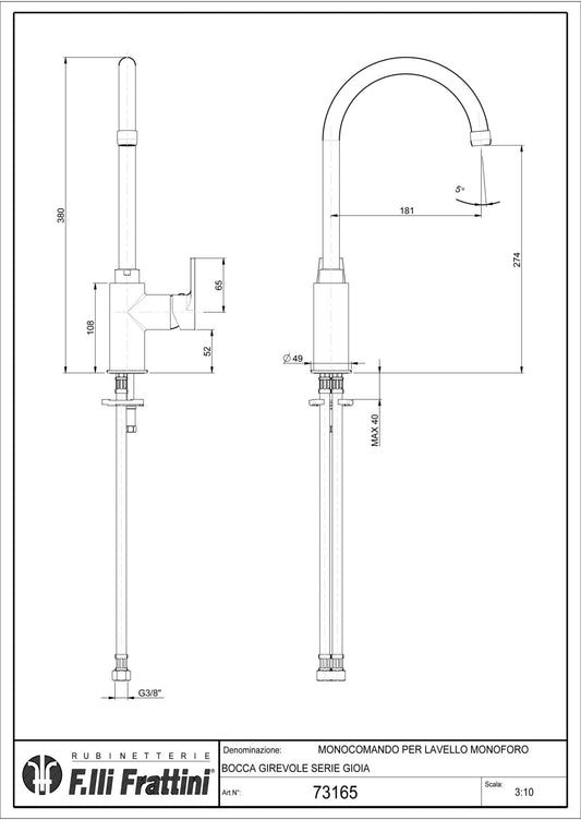 Monocomando Per Lavello Monoforo Bocca Girevole Caleo - Fratelli Frattini