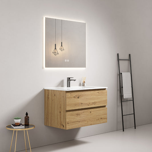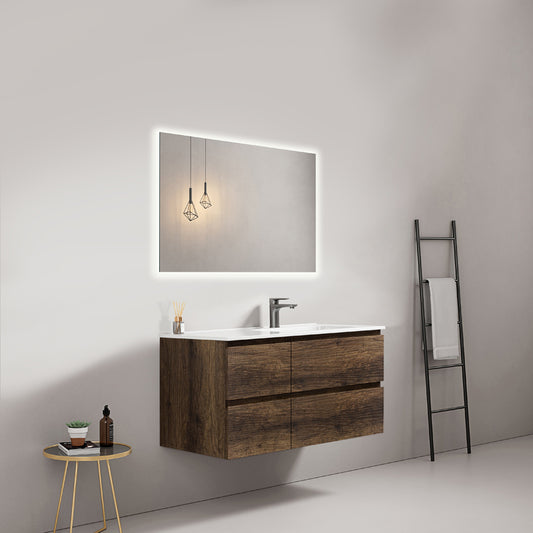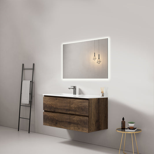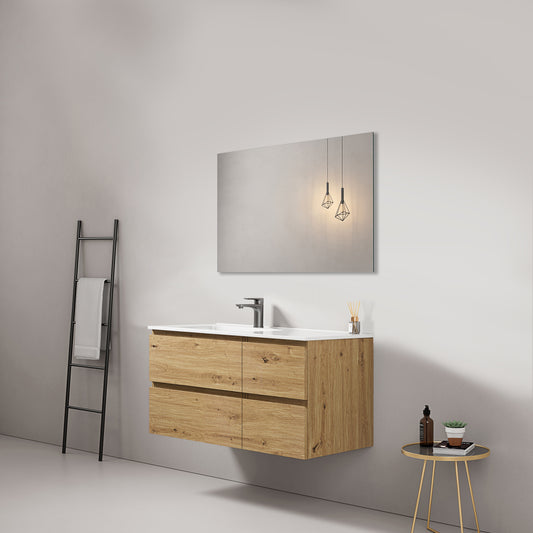 Mobile bagno sospeso 100 cm Bruno Medio Lavabo in Ceramica Specchio Quadro Retroilluminato - Fiji Wood