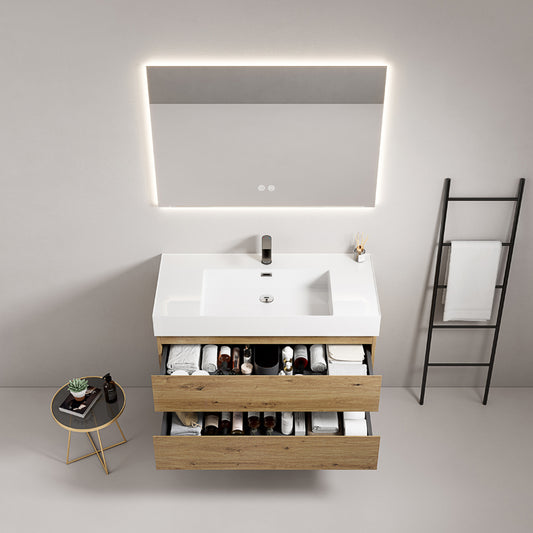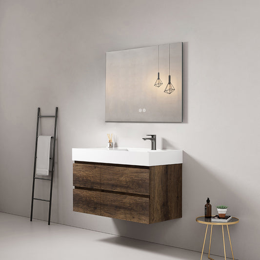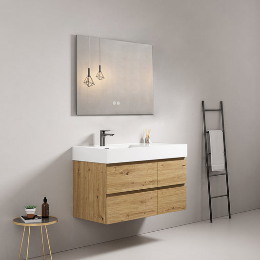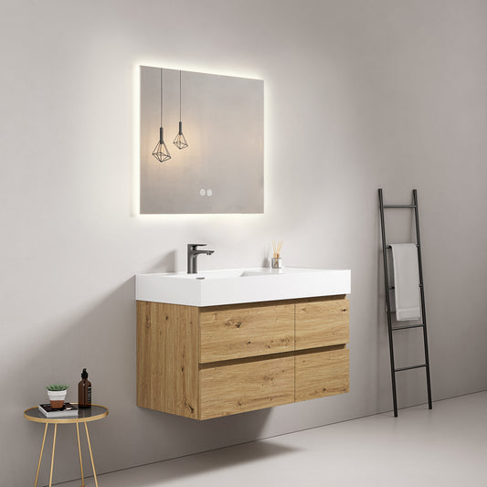 Mobile bagno sospeso 100 cm Bruno Medio Lavabo in Resina Specchio Quadro Retroilluminato - Fiji Wood