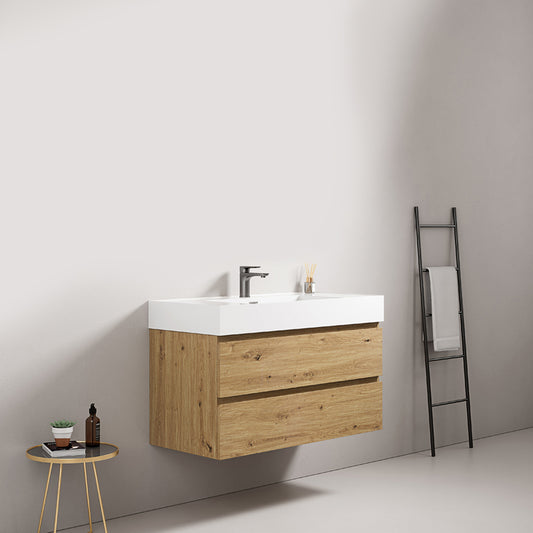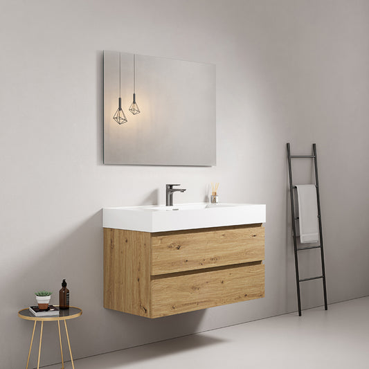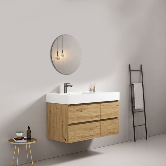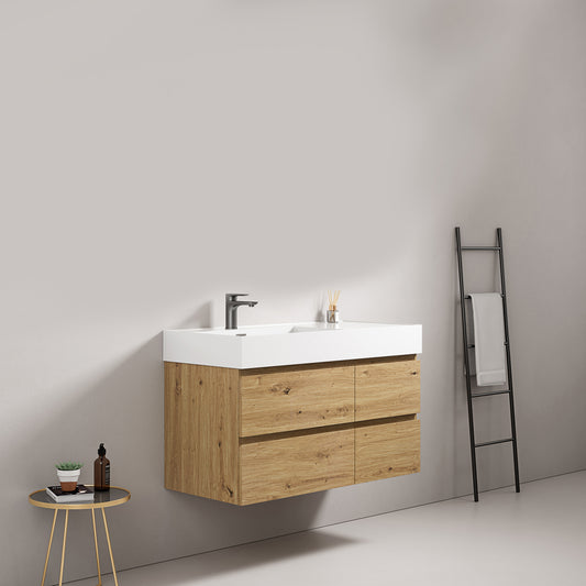 Mobile bagno sospeso 100 cm Bruno Medio Lavabo in Resina Senza Specchio - Fiji Wood