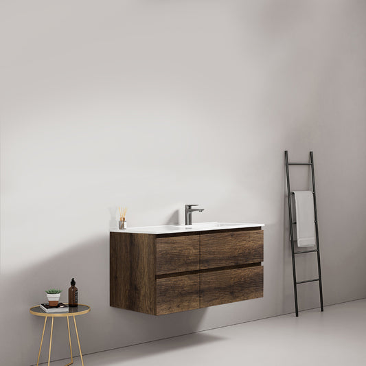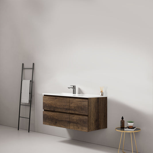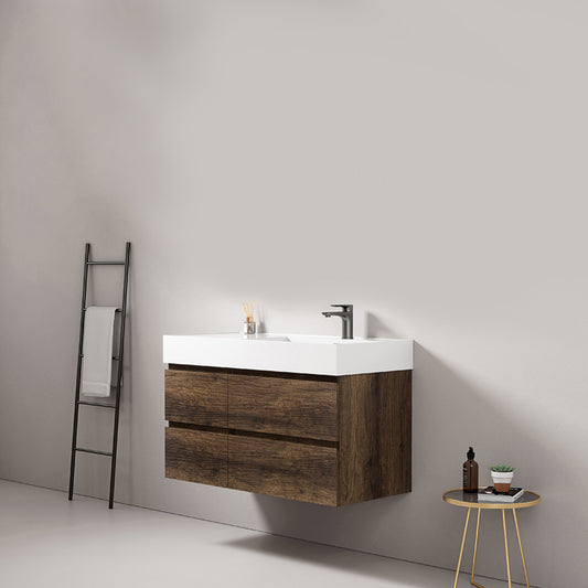 Mobile bagno sospeso 100 cm Bruno Scuro Lavabo a Destra in Resina Senza Specchio - Fiji Wood