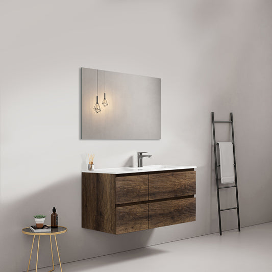 Mobile bagno sospeso 100 cm Bruno Scuro Lavabo a Destra in Resina Specchio Quadro - Fiji Wood