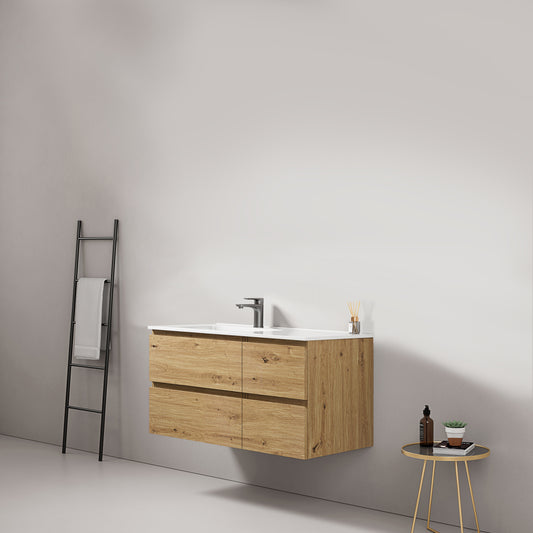 Mobile bagno sospeso 100 cm Bruno Medio Lavabo in Ceramica Senza Specchio - Fiji Wood
