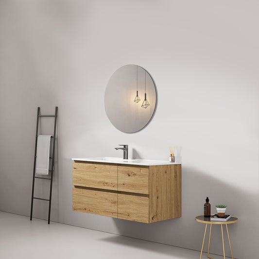 Mobile bagno sospeso 100 cm Bruno Medio Lavabo in Ceramica Specchio Tondo - Fiji Wood