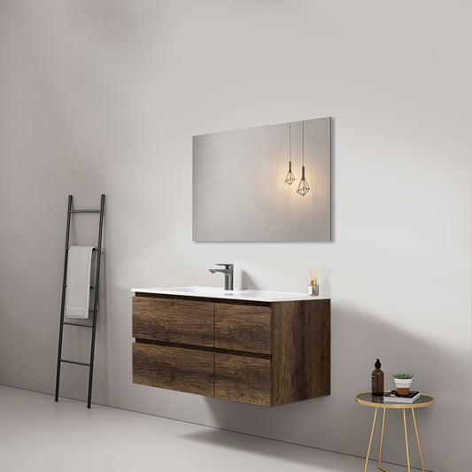 Mobile bagno sospeso 100 cm Bruno Medio Lavabo in Ceramica Specchio Quadro - Fiji Wood