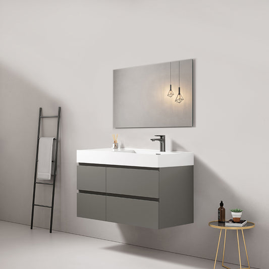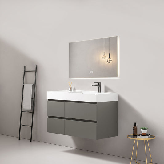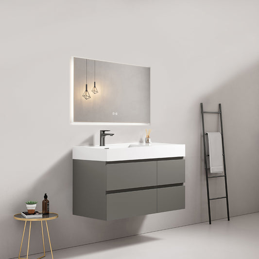 Mobile bagno sospeso 100 cm Grigio Londra Lavabo a Sinistra in Resina Specchio Quadro - Fiji Paint
