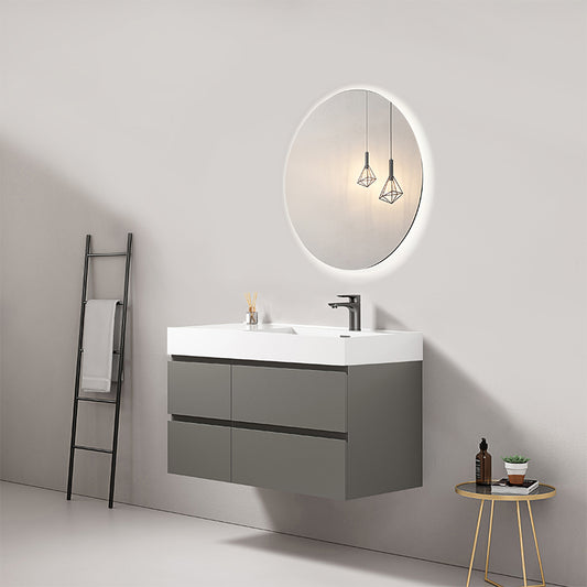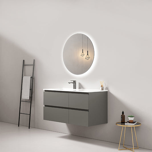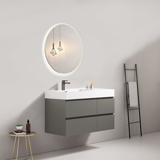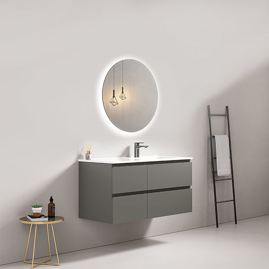 Mobile bagno sospeso 100 cm Grigio Londra Lavabo a Sinistra in Resina Specchio Tondo Retroilluminato - Fiji Paint