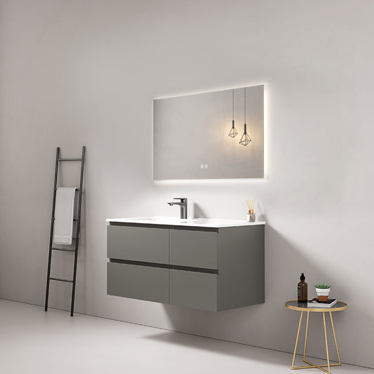 Mobile bagno sospeso 100 cm Grigio Londra Lavabo in Ceramica Specchio Quadro Retroilluminato - Fiji Paint