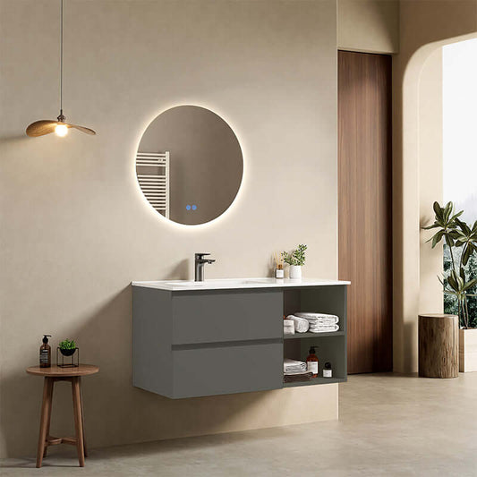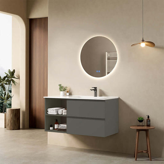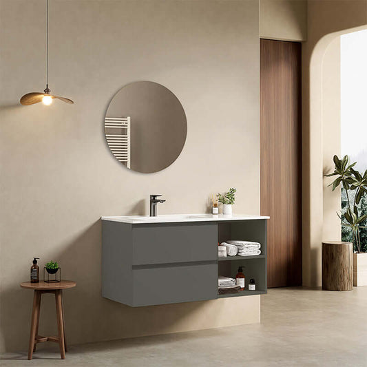 Mobile bagno sospeso 100 cm Grigio Londra Lavabo a Sinistra in Ceramica Specchio Tondo - Fiji Paint Plus