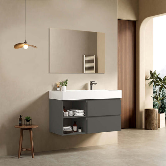 Mobile bagno sospeso 100 cm Grigio Londra Lavabo a Sinistra in Resina Specchio Quadro - Fiji Paint Plus