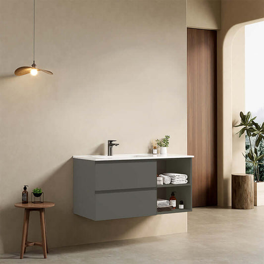 Mobile bagno sospeso 100 cm Grigio Londra Lavabo a Sinistra in Ceramica Senza Specchio - Fiji Paint Plus