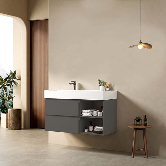 Mobile bagno sospeso 100 cm Grigio Londra Lavabo a Sinistra in Resina Senza Specchio - Fiji Paint Plus