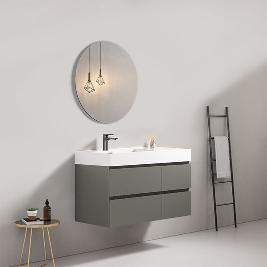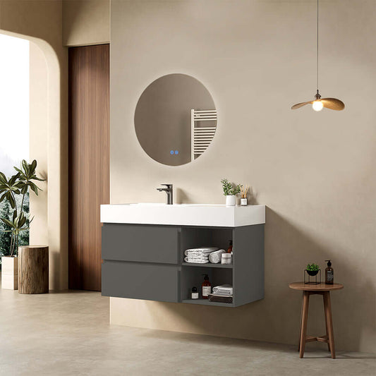 Mobile bagno sospeso 100 cm Grigio Londra Lavabo a Destra in Resina Specchio Tondo - Fiji Paint Plus