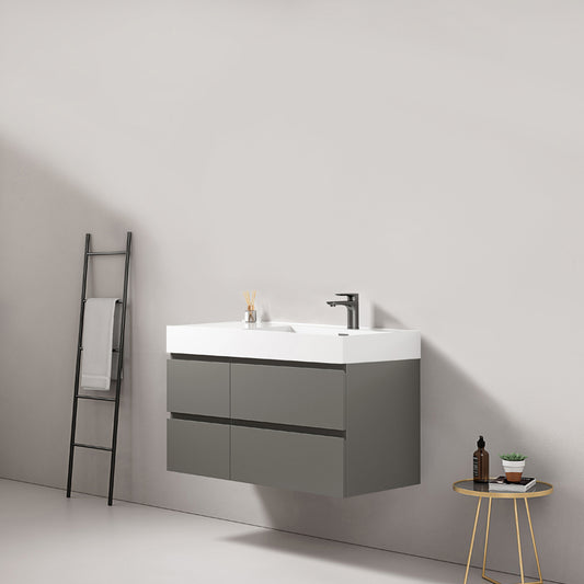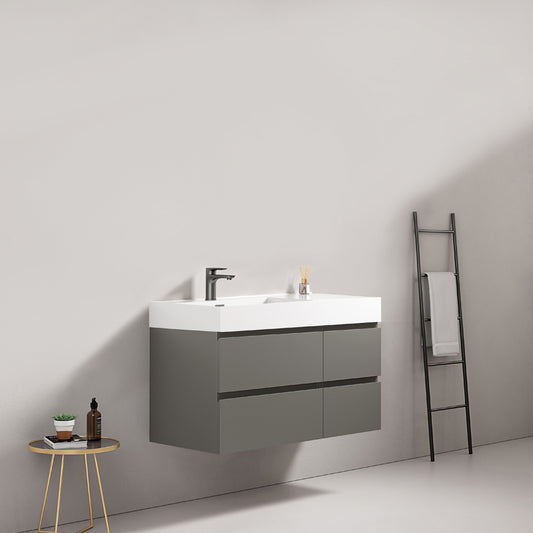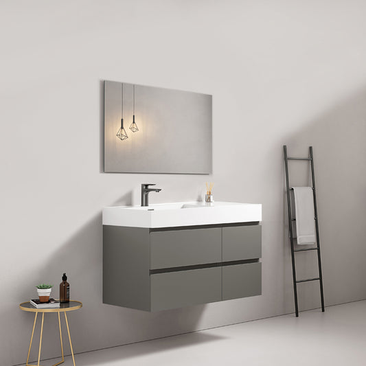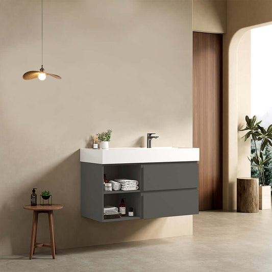 Mobile bagno sospeso 100 cm Grigio Londra Lavabo a Destra in Resina Senza Specchio - Fiji Paint Plus