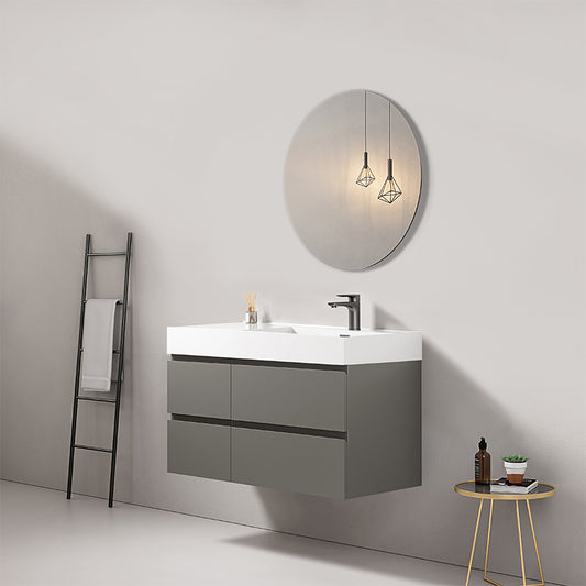 Mobile bagno sospeso 100 cm Grigio Londra Lavabo a Sinistra in Resina Specchio Tondo - Fiji Paint Plus